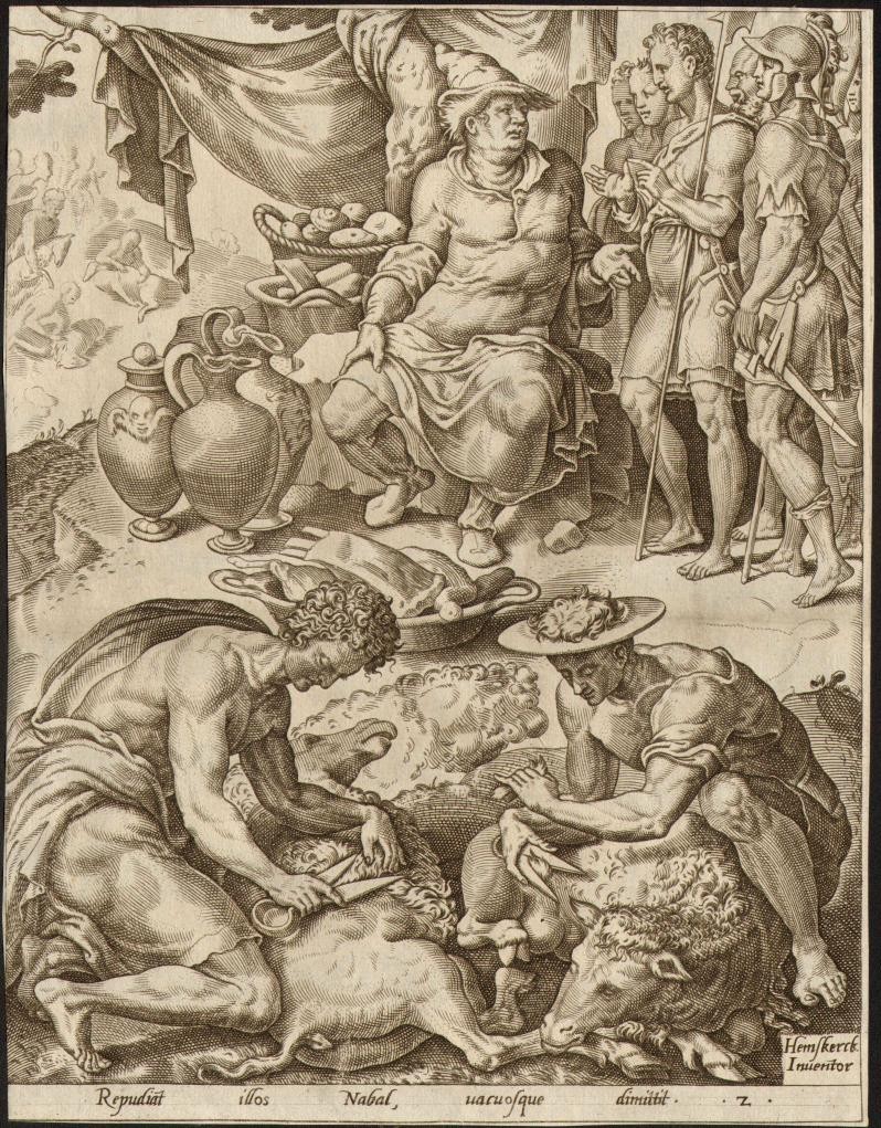 There was a man in Maon, whose property was in Carmel. The man was very rich; he had three thousand sheep and a thousand goats. He was shearing his sheep in Carmel. Now the name of the man was Nabal, and the name of his wife Abigail. The woman was clever and beautiful, but the man was surly and mean; he was a Calebite. David heard in the wilderness that Nabal was shearing his sheep. So David sent ten young men; and David said to the young men, “Go up to Carmel, and go to Nabal, and greet him in my name. Thus you shall salute him: ‘Peace be to you, and peace be to your house, and peace be to all that you have. I hear that you have shearers; now your shepherds have been with us, and we did them no harm, and they missed nothing, all the time they were in Carmel. Ask your young men, and they will tell you. Therefore let my young men find favor in your sight; for we have come on a feast day. Please give whatever you have at hand to your servants and to your son David.’” When David’s young men came, they said all this to Nabal in the name of David; and then they waited. But Nabal answered David’s servants, “Who is David? Who is the son of Jesse? There are many servants today who are breaking away from their masters. Shall I take my bread and my water and the meat that I have butchered for my shearers, and give it to men who come from I do not know where?”