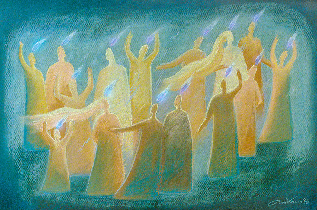 When the day of Pentecost had come, they were all together in one place. And suddenly from heaven there came a sound like the rush of a violent wind, and it filled the entire house where they were sitting. Divided tongues, as of fire, appeared among them, and a tongue rested on each of them. All of them were filled with the Holy Spirit and began to speak in other languages, as the Spirit gave them ability.